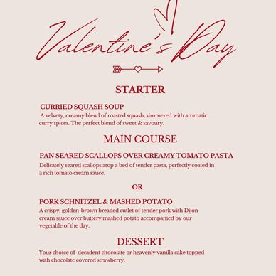 Celebrate love this February 14th with our special Valentine’s Day menu and live music!